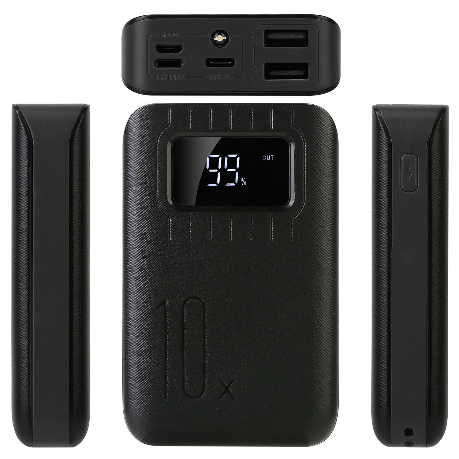 10000mAh Portable Power Bank External Battery Pack Charger Dual USB Charge Ports with LCD Display Flashlight Type C Micro USB Lightning Input Ports