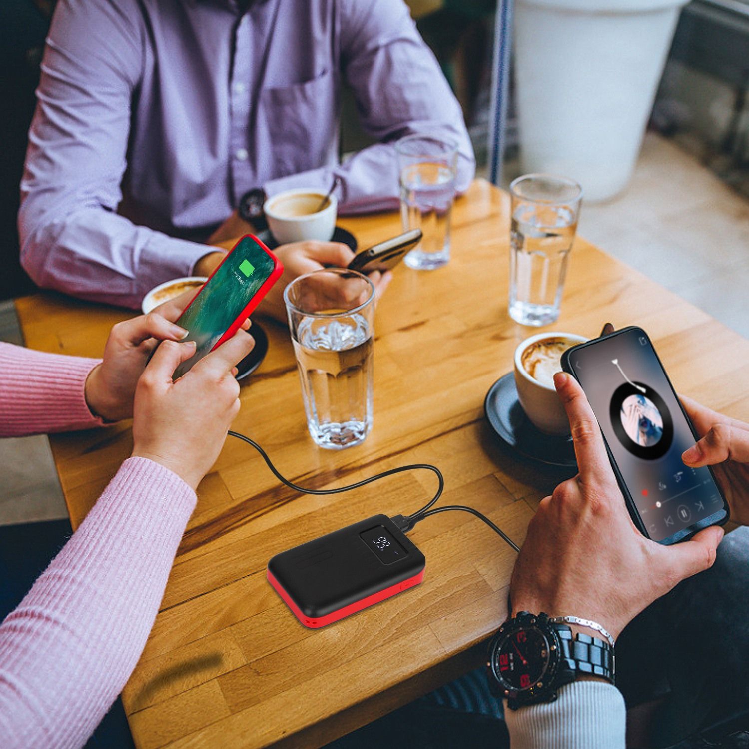 *Reliable Dual Charging Solution*:Our 10000mAh power bank detects your device automatically and can charge 2 electronic devices simultaneously at full speed(2.1A+1A).Share the charging ports with your family or friends conveniently.